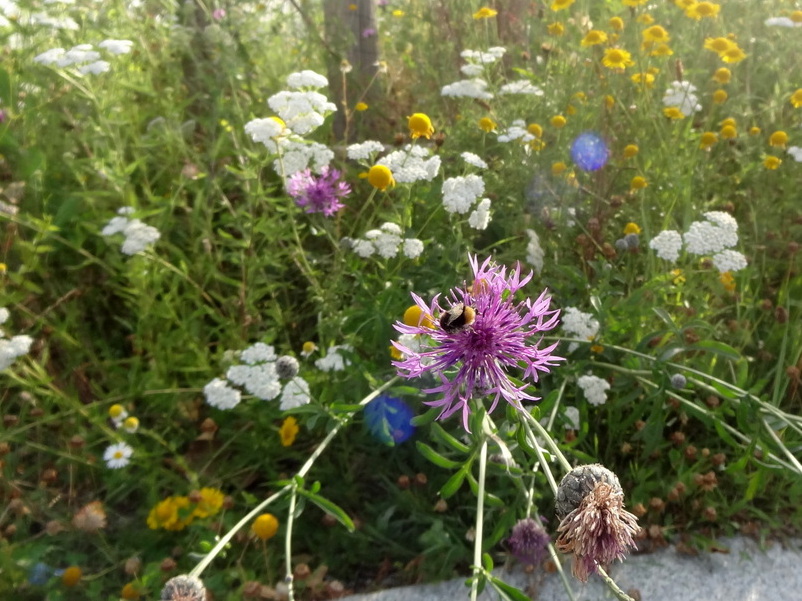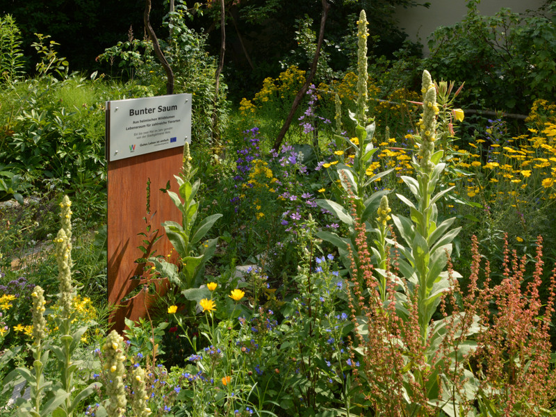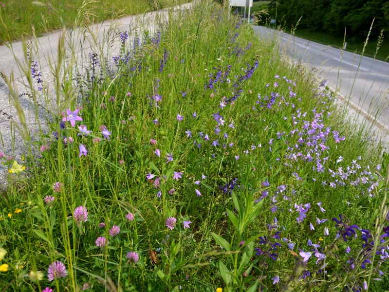 Artenreiche und bunte Blumenwiesen sind in der Agrarlandschaft selten geworden. In Städten und Dörfern können wir sie als Blühflächen in Parks und Gewerbegebieten, an Straßenrändern und auf Verkehrsinseln zu neuem Leben erwecken. Vorträge, Beratungen und Praxiswerkstätten zu diesem Thema sind in den letzten Jahren zu einem stark nachgefragten Teil unserer Arbeit geworden.