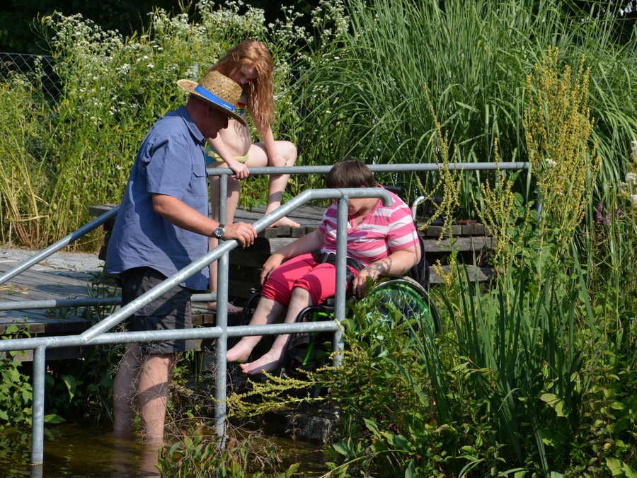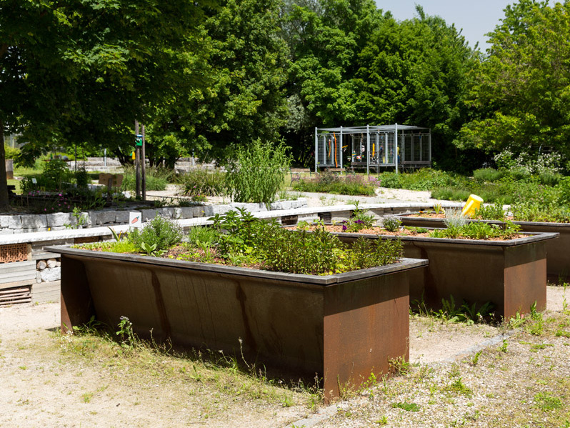 Der 20 Jahre alte Therapiegarten des Instituts Hartheim wurde nach unseren Plänen runderneuert. Die wertvollen Elemente wie Biotopteich, Hecke und Wegenetz wurden erhalten. In enger Abstimmung mit dem Personal der Betreuungseinrichtung wurde die Alltagstauglichkeit verbessert und den aktuellen Entwicklungen in der Gartentherapie angepasst. Das Bepflanzungskonzept wurde auf den neuen Schwerpunkt der institutseigenen Gärtnerei abgestimmt: Heimische Gehölze, Blumen und Gräser aus regionalen Herkünften. Der Garten wurde so auch zu einem Schaugarten für heimische Wildpflanzen.