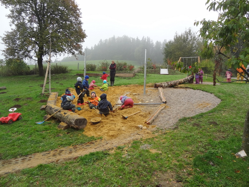 Eine Elterninitiative steht hinter diesem Kindergarten, der auf einem ehemaligen Bauernhof in der Einschicht gegründet wurde. Der Name ist Programm: Die Kinder sollen durch elementare Naturerfahrungen starke Wurzeln entwickeln. Im engen Austausch mit den Müttern und BetreuerInnen haben wir die schon vorhandenen Stärken dieses Geländes behutsam weiterentwickelt. Der Einsatz von Spielgeräten beschränkt sich auf die von der Bildungsabteilung des Landes geforderte Mindestausstattung.