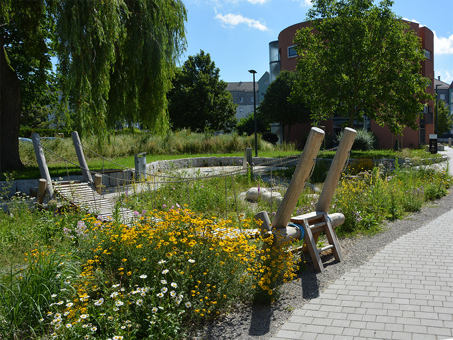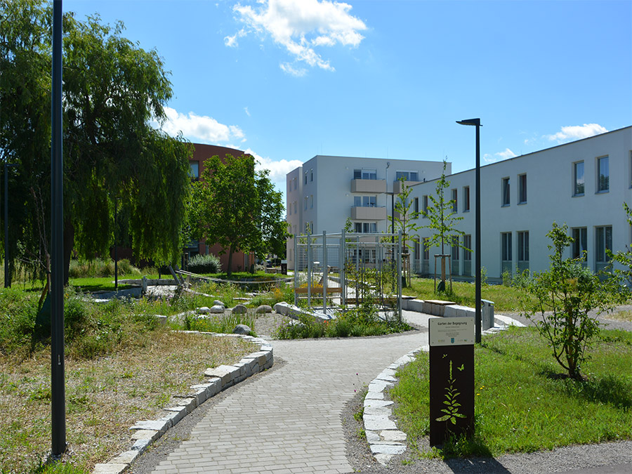 Der Garten wird auch ein Treffpunkt der Menschen mit der Natur. Dafür sorgen die vielen heimischen Bäume, Wildsträucher, Blumen und Gräser.