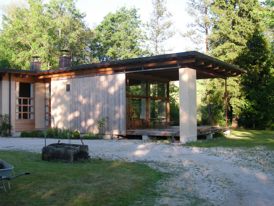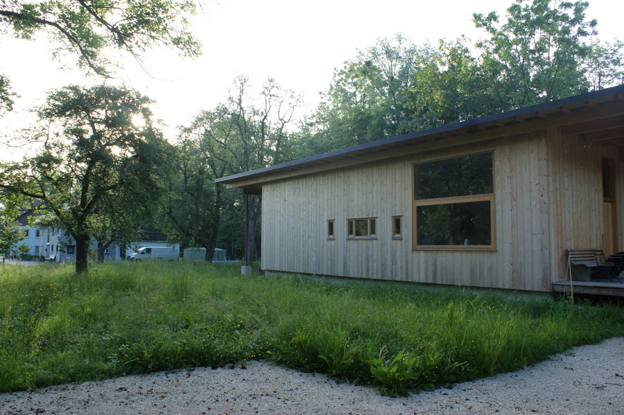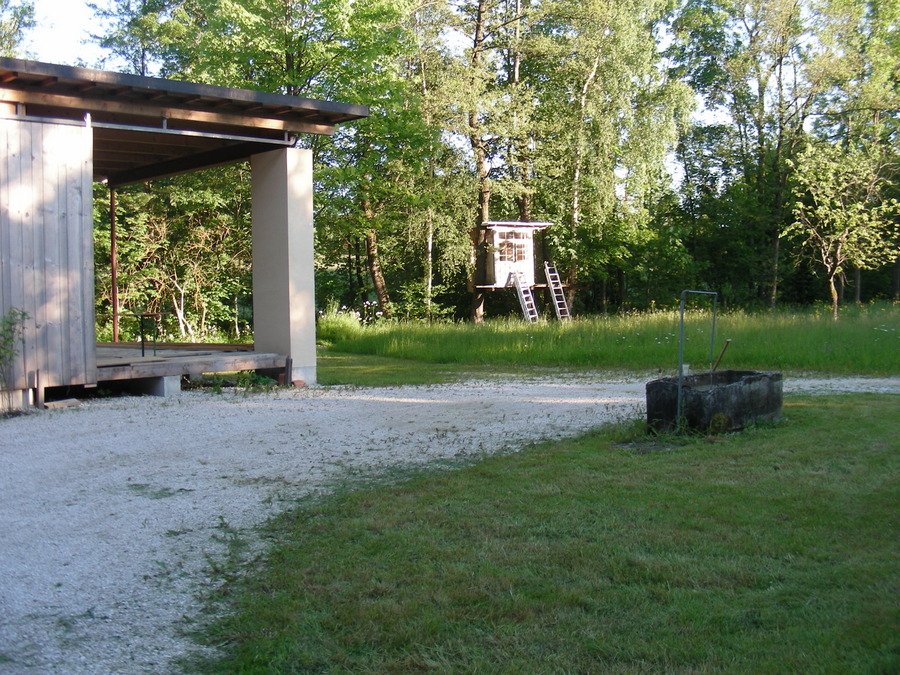 Wie auf einer Insel liegt dieser 5000 m² große Garten zwischen zwei Armen der Waldzeller Ache. Die Streuobstwiese hinter dem Wohnhaus bildet eine Lichtung zwischen den Ufergehölzen der beiden Gewässer. Durch die Pflanzung einiger großer Laubbäume erhielt der Garten vor dem Haus einen parkartigen Charakter, der auf einem ausgemähten Rundweg lustwandelnd erfahren werden kann.