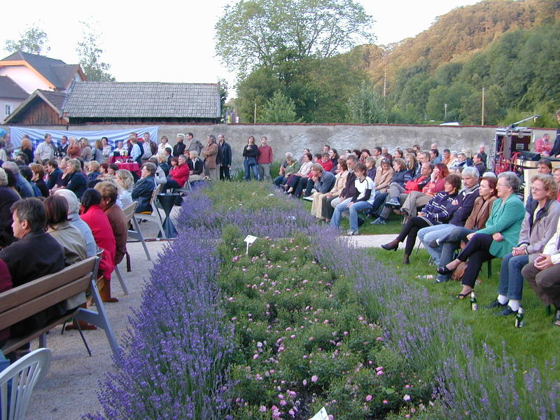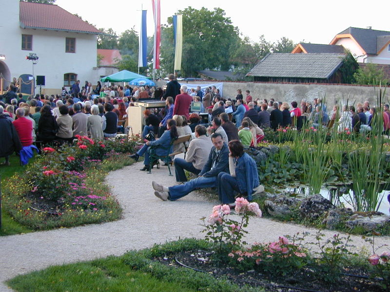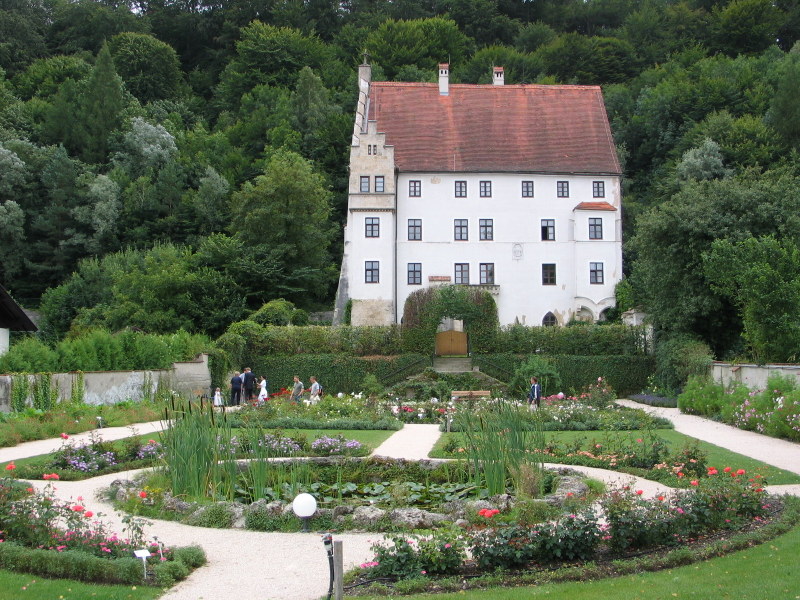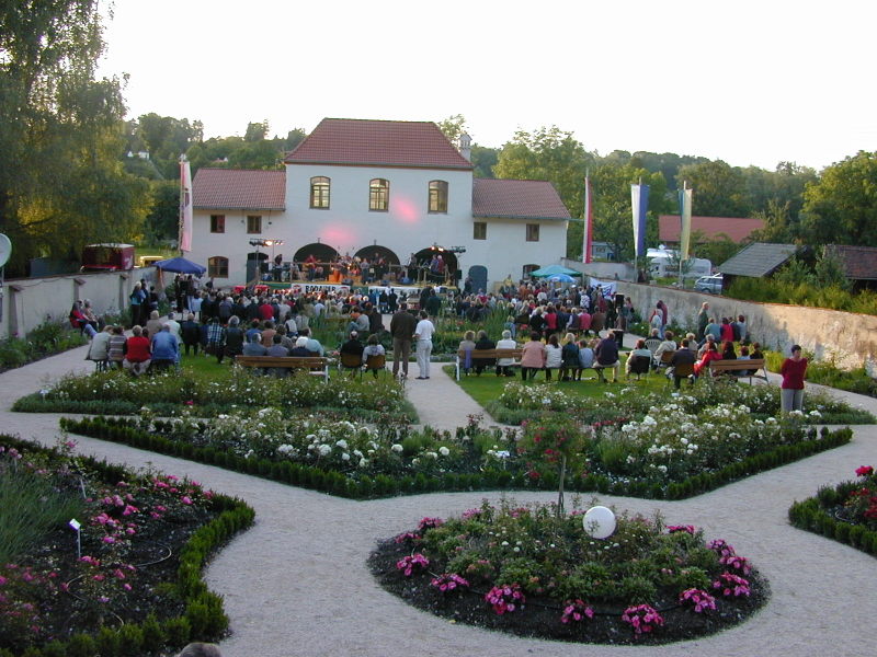 Eine historische Anlage des ländlichen Barock im neuen Gewand. In den strengen geometrischen Formen des 18. Jahrhunderts haben wir das unerschöpfliche Gartenthema "Rosen" einmal anders aufgefasst. Die "echten" Rosen der Gattung Rosa werden ergänzt durch Namensvettern, die botanisch eigentlich nichts mit Rosen zu tun haben: Schneerosen, Pfingstrosen, Stockrosen und und und. Das Projekt entstand im Rahmen der grenzübergreifenden Gartenschau "Gärten am Fluss 2004" mit Förderung der Inn-Salzach-Euregio.