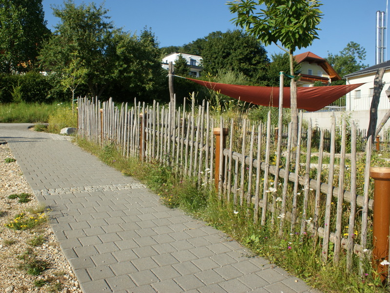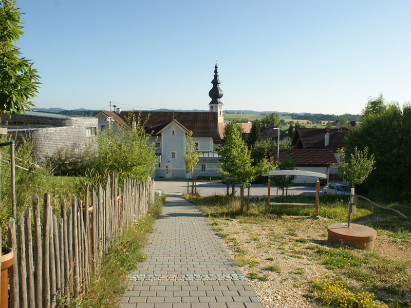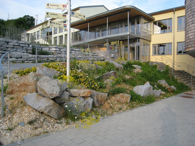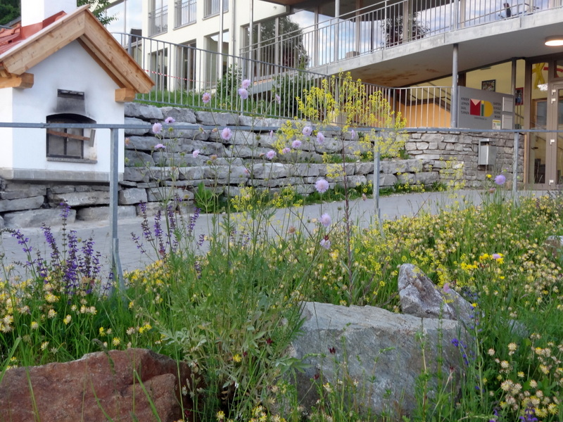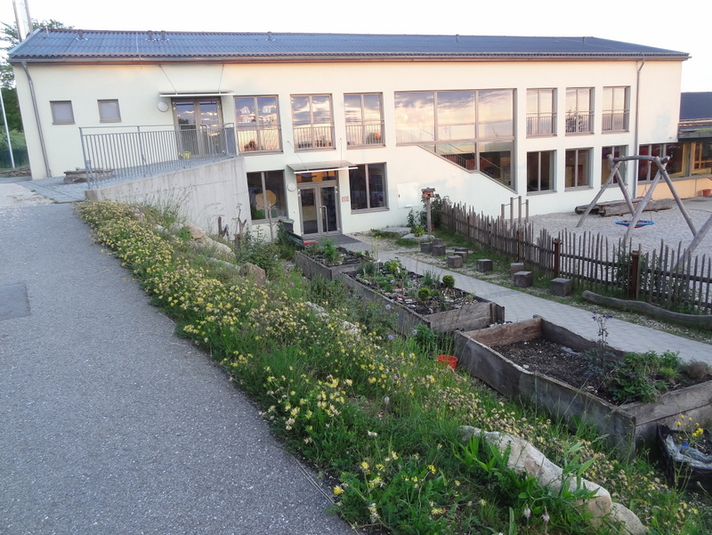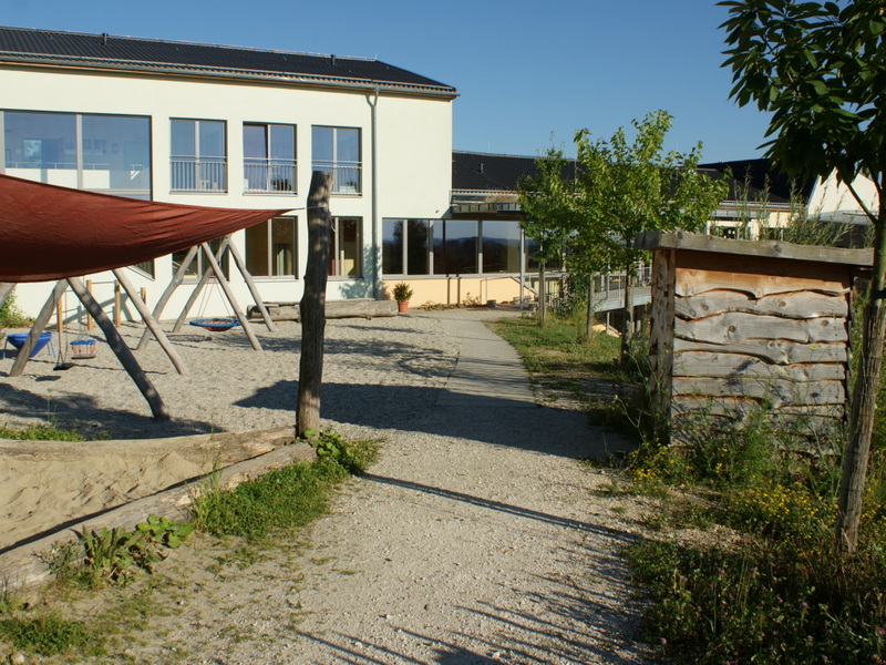 Zweiklassige Volksschule und zweigruppiger Kindergarten im "Kulturdorf Europas". Im Zuge der Renovierung und Umgestaltung von Volksschule, Kindergarten und Musikproberaum wurden die Freiräume der Volksschule und des Kindergartens nach den Grundsätzen des Programms "Wege zur Natur im Siedlungsraum" angelegt. Die Hanglage und das enge Budget erforderten kreative Lösungen.