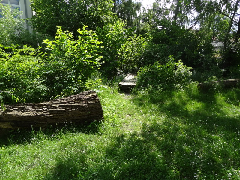 Über viele Jahre der mit Abstand hochwertigste naturnahe Schulfreiraum Oberösterreichs, vielfach ausgezeichnet und von zahlreichen Exkursionen besucht. Unter der unermüdlichen Obsorge des Kunstpädagogen Klaus Hanner wuchs im Norden von Steyr einer der erstaunlichsten Schulfreiräume unseres Landes. Aus einem zwar weitläufigen, aber naturfernen und lebensfeindlichen Schulhof, der den Charme eines Exerzierplatzes hatte, wurde durch schrittweise und einfühlsame Weiterentwicklung über viele Jahre eine gepflegte Gartenwildnis, die für die zahlreichen Schüler und Lehrer einen Ausgleichs-, Erholungs- und Lernraum besonderer Qualität darstellt.