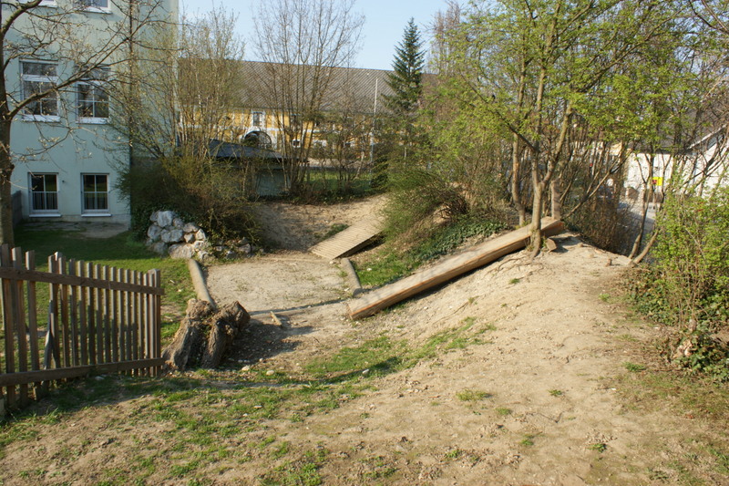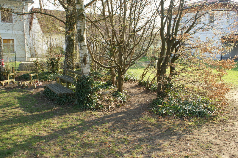 Der Oldie unter unseren Schulgärten - alt aber gut. Von Anfang an von starken und höchst ambitionierten Lehrerpersönlichkeiten getragen und geprägt, konnte der Geist der ursprünglichen Gestaltung nun schon in die dritte Schulleitergeneration übertragen werden. Am Anfang war die große Herausforderung, im Garten trotz der unmittelbar daran vorbeiführenden stark frequentierten Bundesstraße eine Oase der Ruhe zu schaffen. Der dafür geschaffene breite Gebüschstreifen hat sich mittlerweile zum vielfältig genutzten Entdeckungs- und Bewegungsraum für die SchülerInnen entwickelt.