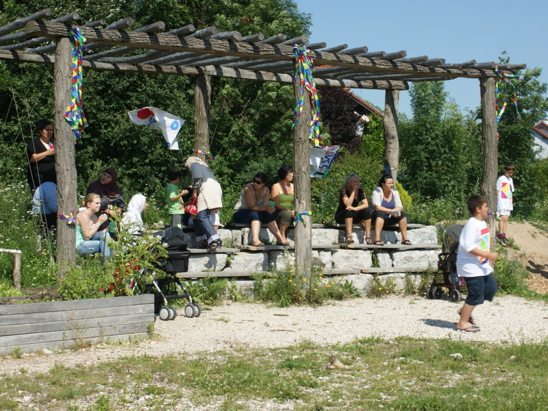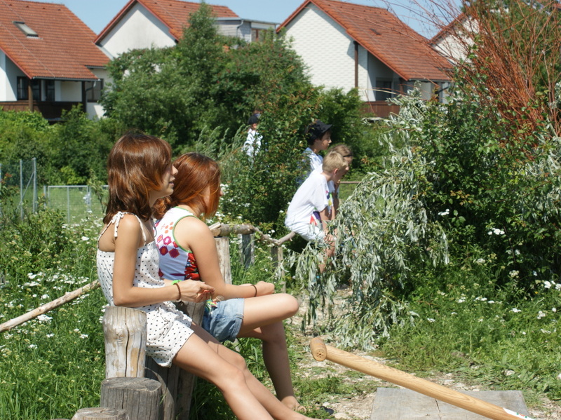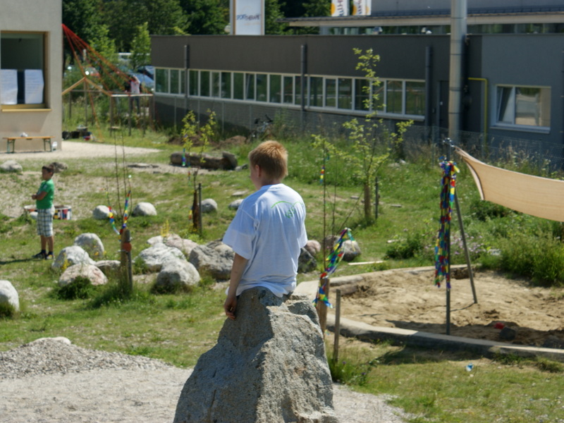 Das Freigelände der neu errichteten "Bewegten Volksschule" Wels Mauth wurde im Hinblick auf gute Benützbarkeit und vielfältige Bewegungsmöglichkeiten angelegt. Schotterasen - ein stabiler Untergrund, der schnell abtrocknet - wird von bunten Blumen durchsetzt; eine Hügellandschaft mit Hecken, Naschgarten, Obstbäumen und Kräutern; Klettermauer und Felsen mit Tunnel, Sandmulde und Krater mit Feuerstelle, Freiluftklassenzimmer mit Wildholz-Pergola und Hochbeete bilden die wesentlichen Elemente des Schulgartens. Die Freiflächen im Hof und vor dem Gebäude wurden zu Aufenthaltsräumen mit Baumkarrees, Kletterpflanzen, Hecken-Dschungel und Sitzbänken.