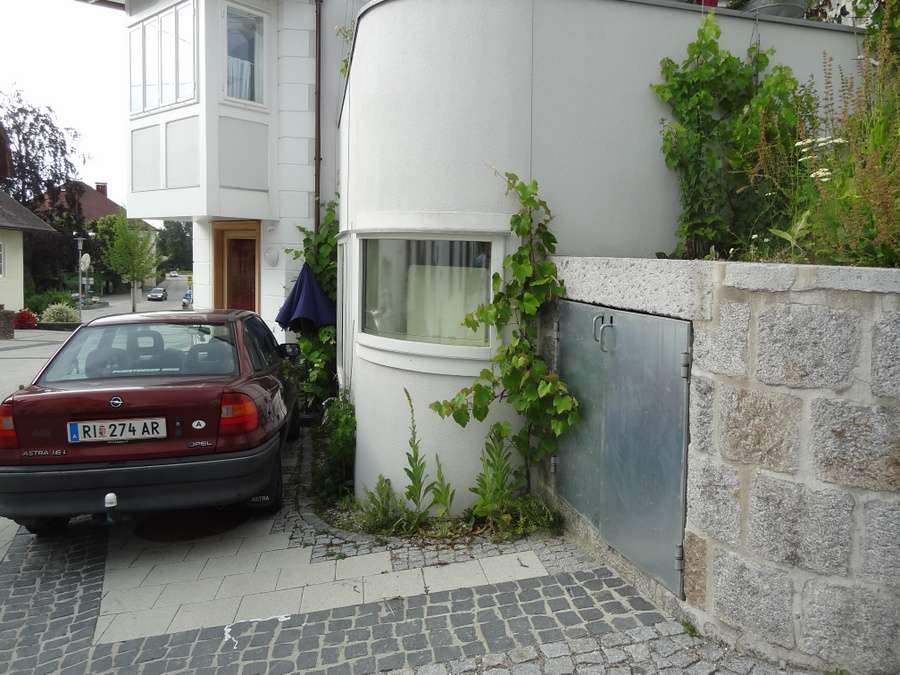 Ein leerstehendes Haus im Zentrum von Waldzell wurde zeitgleich mit der Verkehrsberuhigung der daran vorbeiführenden Straße renoviert. Bei der Gestaltung der wenigen und kleinen Grünflächen wurde darauf geachtet, den dörflichen Charakter, den dieses Haus vor einigen Jahrzehnten hatte, wieder aufleben zu lassen. Mit einem Apfelbaum, der Pflanzung von Spalieren und Blumen, die am Mauerfuß aus den Ritzen sprießen.