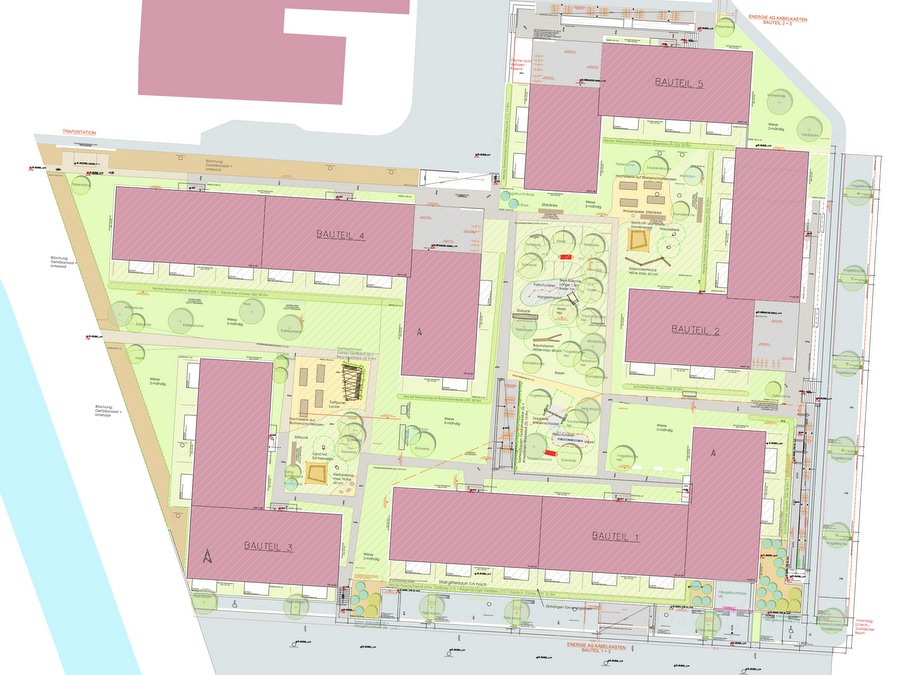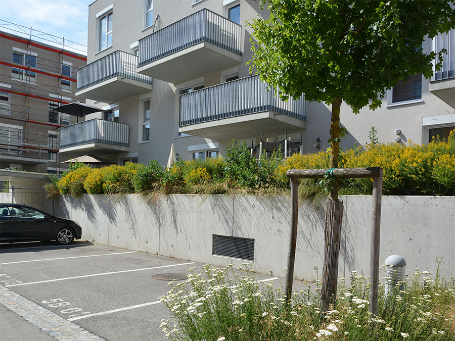 Die Wohnhausanlage Arkade in Grieskirchen gehört zu den Projekten, bei denen die LAWOG besonderen Wert auf die naturnahe Gestaltung der Freiflächen legt. Direkt an der Trattnach gelegen, wurde der naturnahe Charakter auch in die Anlage hereingezogen. Mit der Verwendung heimischer Pflanzen und artenreichen Ansaaten aus heimischen Pflanzen wird der Biodiversität ein hoher Stellenwert eingeräumt. Die Errichtung der Anlage erfolgt in fünf Bauabschnitten.